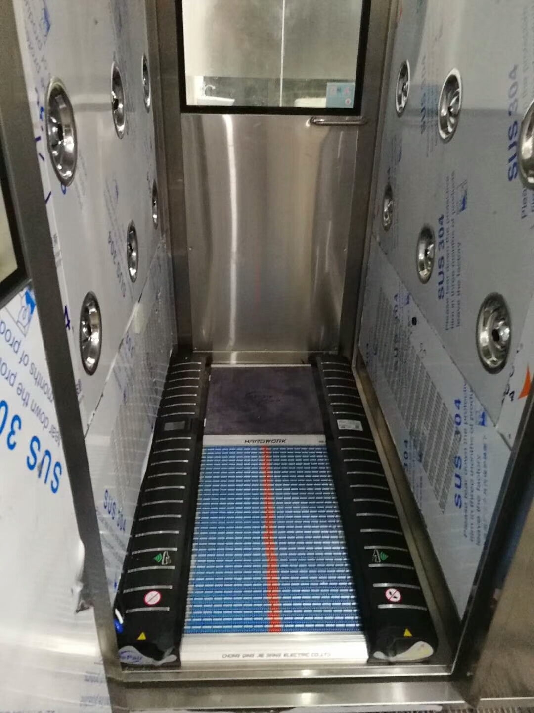 鞋底清潔不銹鋼風淋室的內部展示