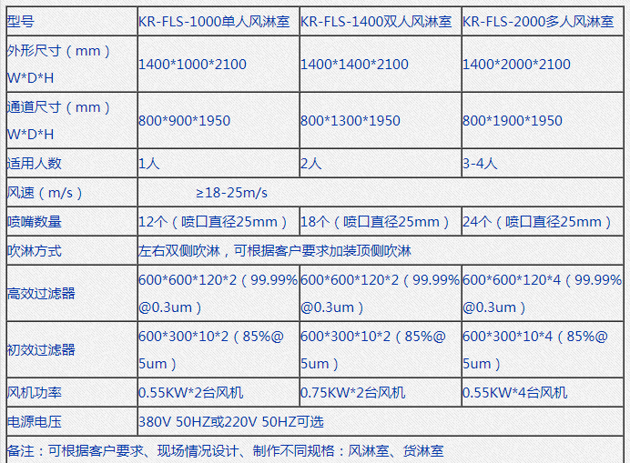 四、云南風淋室廠家承接的無塵車間風淋室常規的參數尺寸