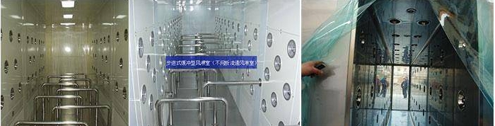 應用于微電子、光電、半導體、醫藥、食品、化工、航空、汽車、印刷、實驗室等各個無塵車間與非無塵車間、階梯潔凈度車間中,用于從低潔凈度房間進入高潔凈度房間過程中除去人各部位大于0.3微米粉塵顆粒,以免進入潔凈房后帶去污染。同時也起到氣流緩沖作用,因為在開門的過程中,附帶有空氣的流動,風淋室很好的把氣流流動停于風淋室內部,很好的避免了空氣流動所帶來的空氣污染。