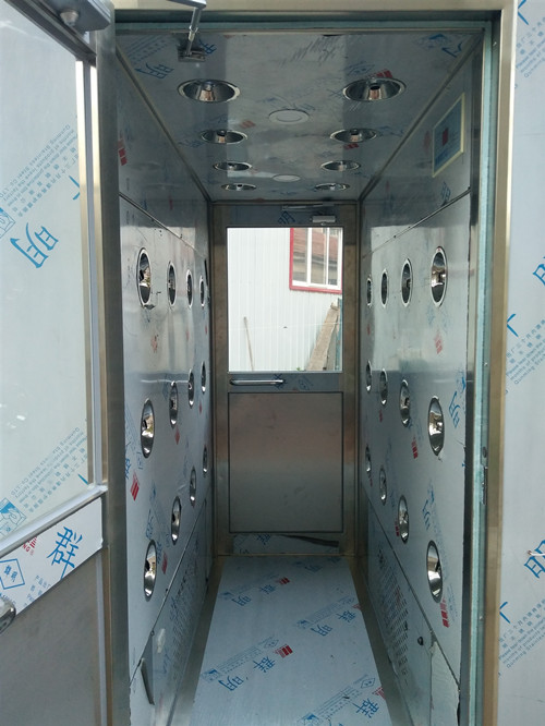 風速在20m/s以上時,除塵效率幾乎達到最大值,隨著風速的提高,除塵效率變化很小。對于不同粒徑的塵埃,在相同的風速下,粒徑越大,除塵效果越好。在現實中,由于風淋室處于潔凈區和非潔凈區之間,而且使用頻繁,過濾器的阻力上升較快,所以,雖然大部分風淋室的初始風速超過20m/s,均可通過驗收,但使用一段時間后,風速就會降低,除塵效率則會急速下降。另外,供應商所說的風速通常是指噴嘴出口處的風速,而在人體或貨物表面的風速又要降低許多。因此,對新的風淋室,其初始風速不應低于25m/s,最好能超過28m/s。