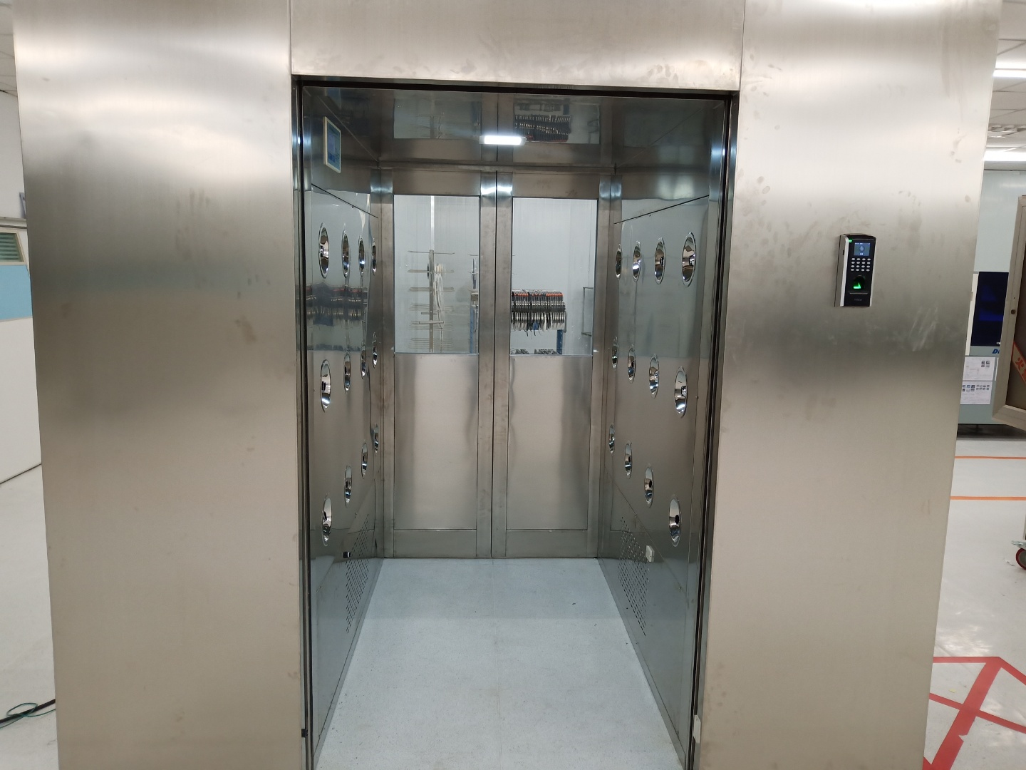 紅外感應(yīng)吹淋開始(語音提示吹淋過程)---------吹淋完畢(語音提示)-----進(jìn)入潔凈室(內(nèi)門自動解鎖)
