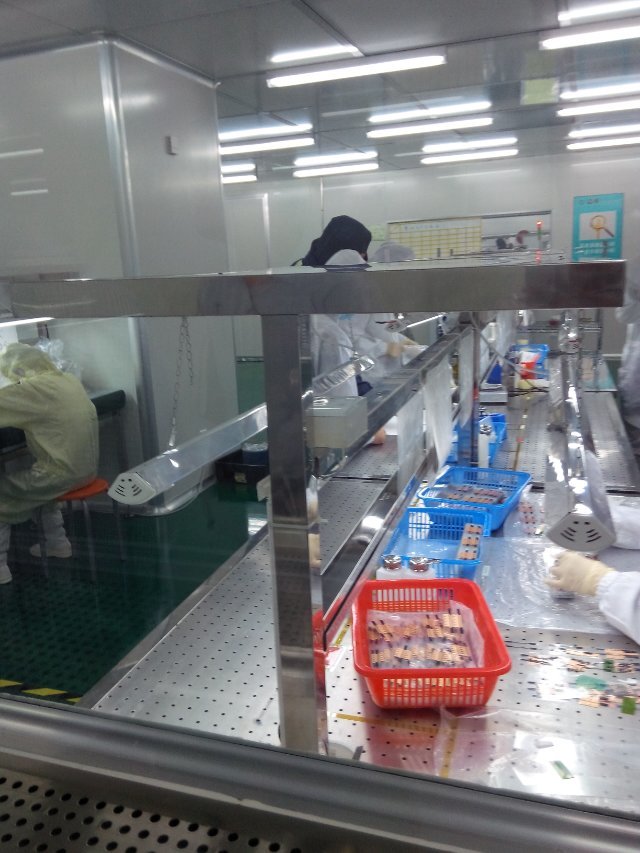 用于生產精密電子產品的凈化車間也叫無塵車間、無塵室,是指將一定空間范圍內之空氣中的微粒子、有害空氣、細菌等之污染物排除,并將室內之溫度、潔凈度、室內壓力、氣流速度與氣流分布、噪音振動及照明、靜電控制在某一需求范圍內,而所給予特別設計之房間。亦即是不論外在之空氣條件如何變化,其室內均能俱有維持原先所設定要求之潔凈度、溫濕度及壓力等性能之特性。精密的電子產品主要是在百級以上無塵車間(含百級無塵車間)內生產出來的。